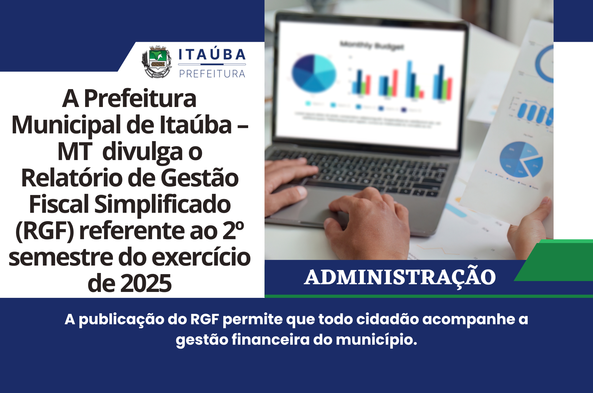 A Prefeitura Municipal de Itaúba – MT torna público o Relatório de Gestão Fiscal Simplificado (RGF) referente ao 2º semestre do exercício de 2025, conforme determina a Lei de Responsabilidade Fiscal.